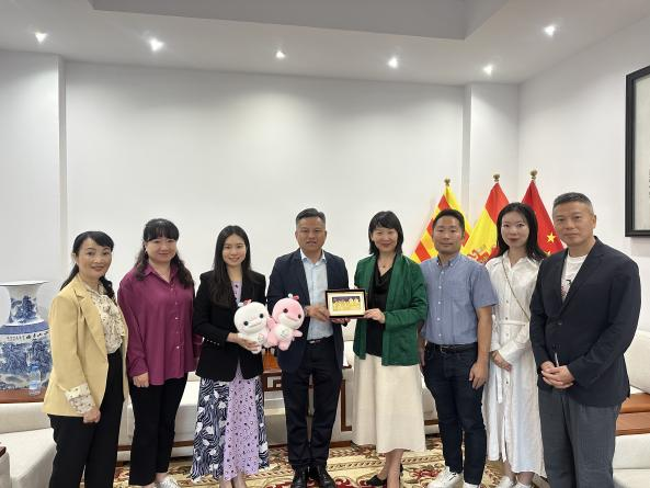 广州市侨联代表团向西班牙侨商总会赠送全运会文创品
