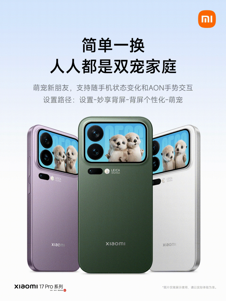 而在小米MIX Flip折叠屏上的外屏萌宠,同样也是被小米17 Pro系列的背屏安排上了,这次还新增五款动态壁纸。